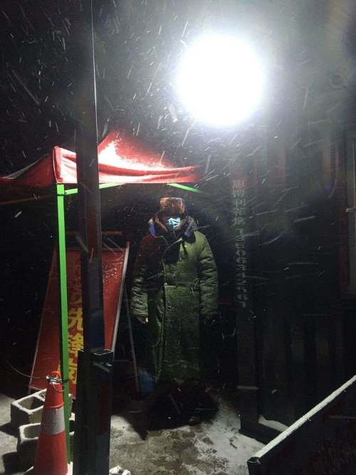 G341国道是连接泰莱两地的交通要道,随着复工复产企业的逐渐增多,来往杨庄路口的车辆越来越多,尤其是很多保障莱钢、泰钢、国电、华电等企业正常生产的重型载货车辆每天通行量达400多辆,而且夜间通行的占到多数。查验通行证、登记驾驶员手机号、身份证、车牌号和出入地,测体温、车辆消毒,过往一辆车整个程序下来至少需要四五分钟。“既不能影响车辆通行,更不能简化程序降低防控标准,要确保万无一失绝对安全。”是他对自己提出的要求。他与同志们一道,对每一辆车一丝不苟的进行登记消毒,错过了饭点,喝口冰冷的矿泉水,啃几口硬邦邦的方便面是常有的事。夜间值班面临的最大困难就是冷,跺跺脚、跑跑圈子是御寒的最好办法。“这点苦比起在武汉一线的医务人员差远了。守住莱芜西大门是我的职责所在,也是一名民兵干部的应有担当。”赵安镇这样说,更是这样做的。