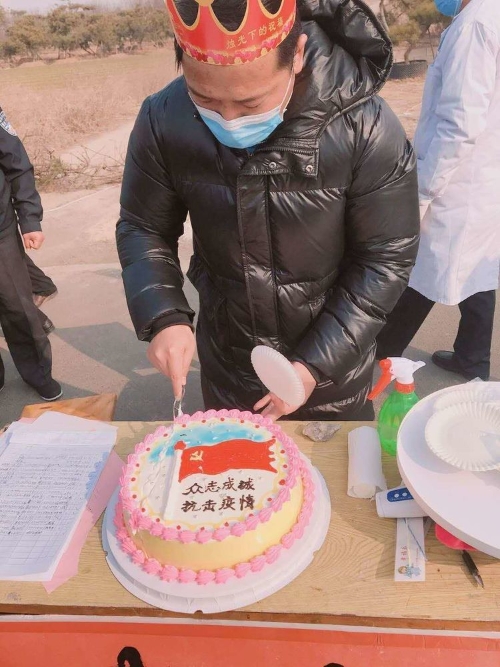 “众志成城、抗击疫情”,生日蛋糕上这句祝福显得格外特殊。正月十六,莱芜区大王庄镇政府为在疫情防控一线值守的唐政定做的这个特殊蛋糕,让他在疫情检查站度过了终生难忘的30岁生日。