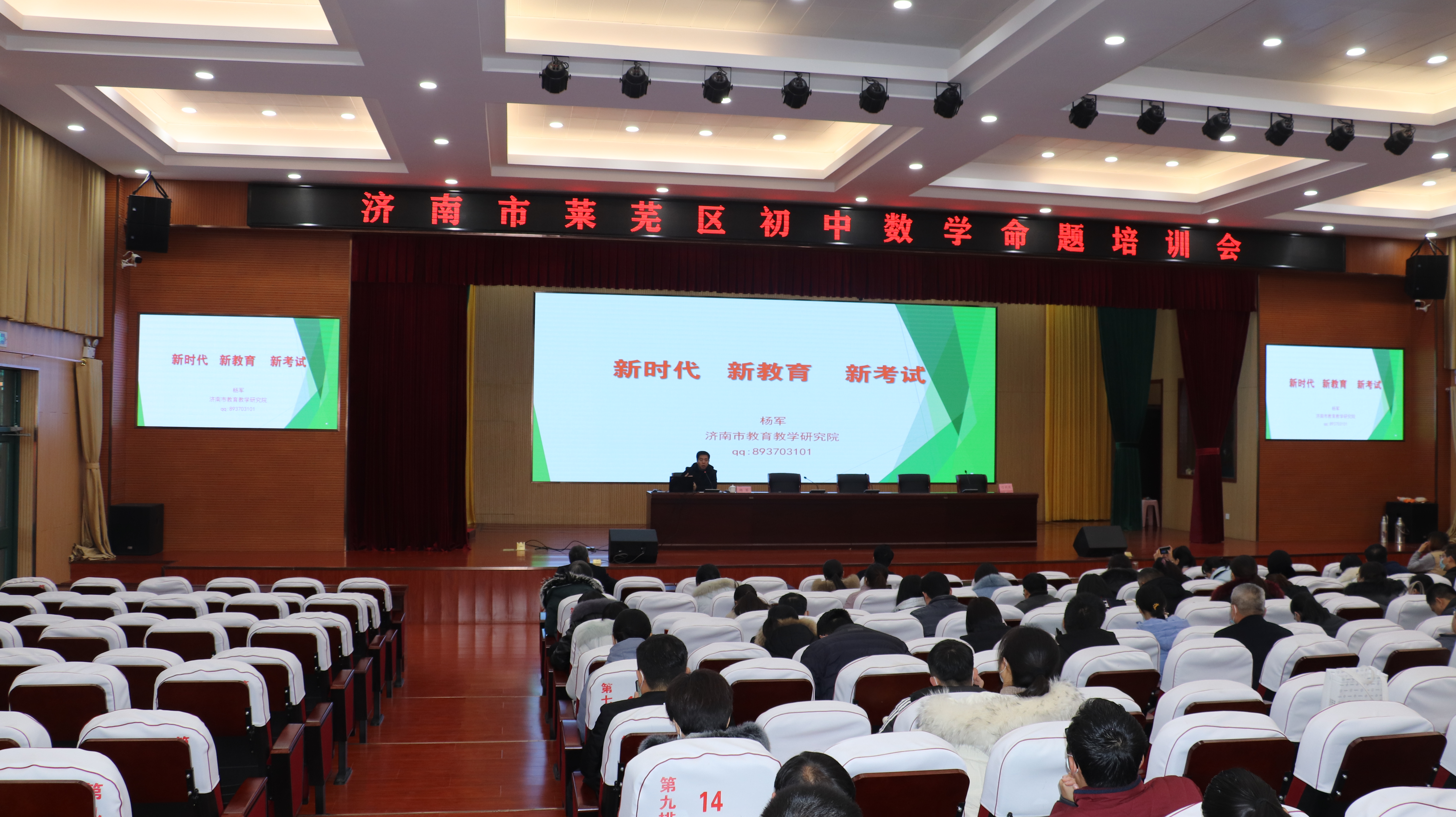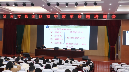 为认真贯彻落实国家的“双减”政策,进一步深化 “三题”研究,发挥命题对课程实施和课堂教学改革的引领作用,提高全区初中初中数学教师的命题基本功,近日,全区初中数学命题培训会在莱芜区胜利中学礼堂举行。济南市教育教学研究院数学教研员杨军、马明,济南市泉城中学校长魏延松,莱芜区教育教学研究中心数学教研员李增文,全区初中学校数学教研组组长、初四备课组长及部分数学骨干教师参加活动,会议由胜利中学梁凤芹老师主持。