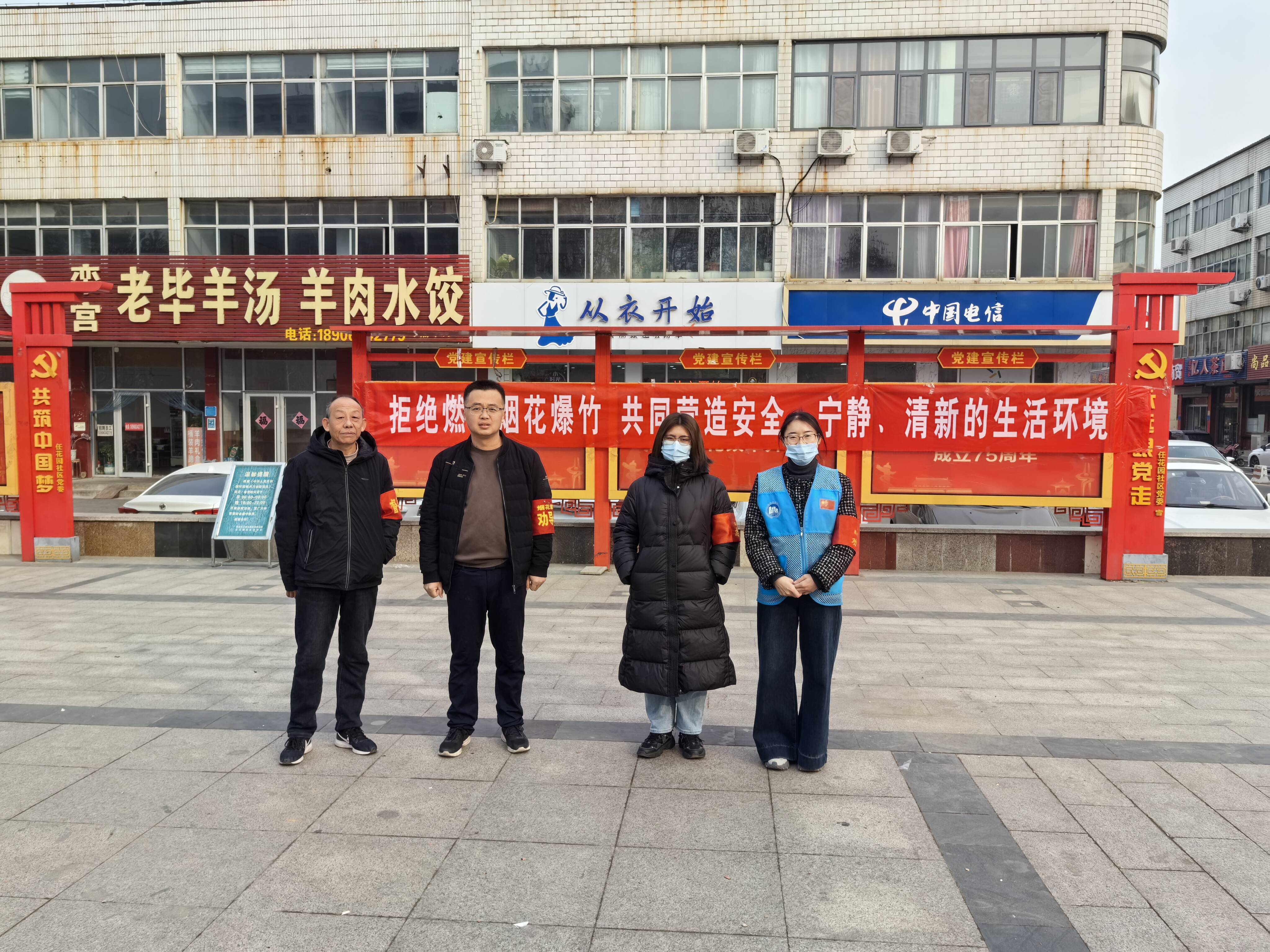 任花园巡查过程中,社区工作人员佩戴红色袖章,在社区小广场、居民楼间,巡查是否有售卖和燃放烟花爆竹的行为,如果有售卖和燃放烟花爆竹的行为,工作人员立即对其进行劝导,并且告知其燃放烟花爆竹的危害以及禁止燃放烟花爆竹的区域。此外,工作人员还利用宣传栏张贴海报,微信朋友圈、居民群发信息,小区大门口小喇叭循环播放禁放语音,悬挂禁放宣传横幅等方式,让居民了解燃放烟花爆竹影响空气质量,更容易引发火灾事故造成人身伤亡及财产损失,引导大家选择环保安全的方式庆祝新春佳节。
