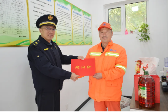 区城管局各领导干部分别前往环卫模范之星郭吉文、柳秀芝、程太华的工作一线,为他们送去慰问金和慰问物资,并与他们亲切交谈,详细了解其身体状况、家庭生活和工作情况,对他们多年来践行“宁愿一人脏,换来万家净”的奉献精神表示高度赞扬。
