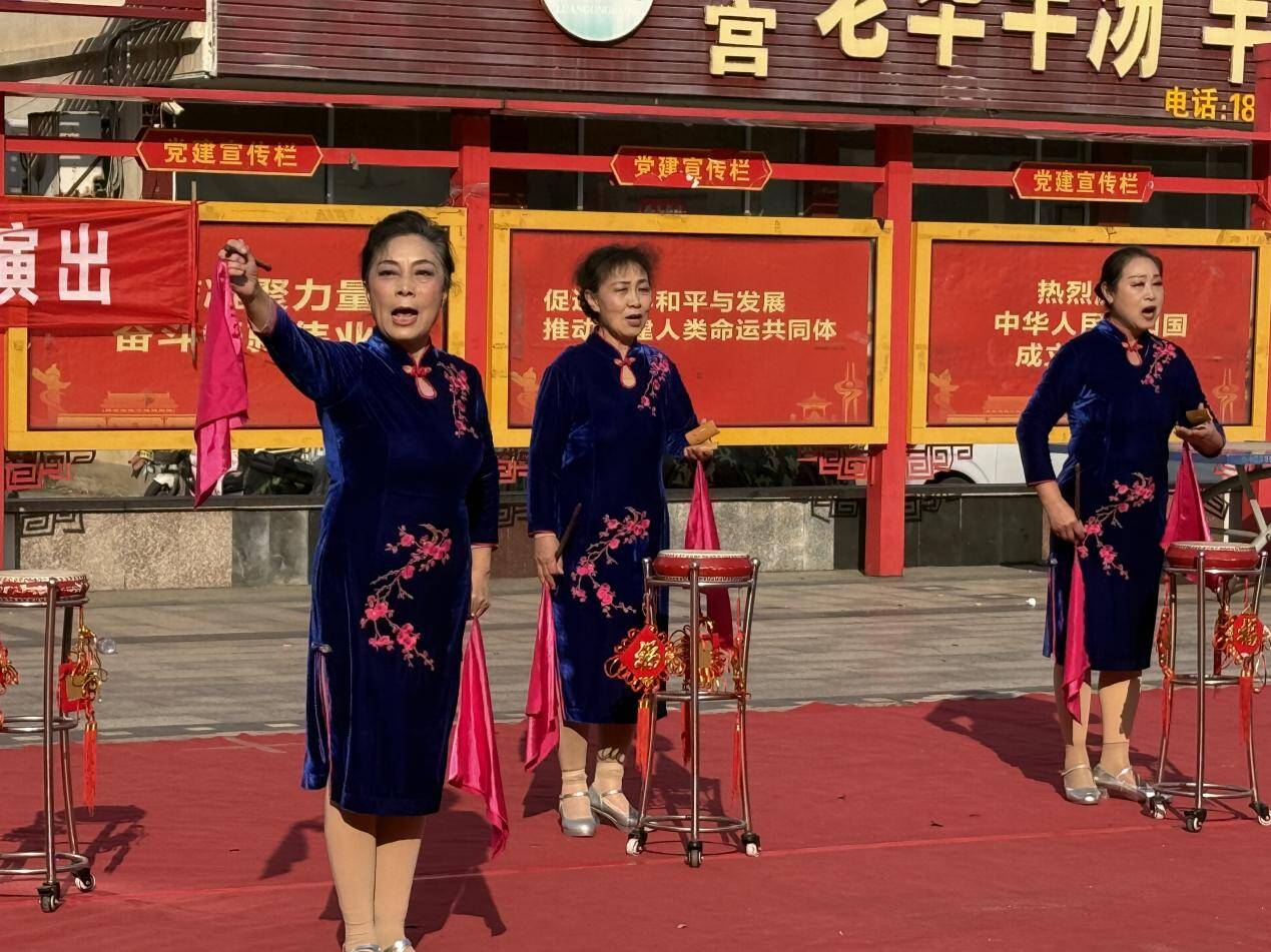 舞台上,当《看山看水看中国》的悠扬旋律响彻社区广场,一群精神矍铄的中老年舞者身着盛装,踏着轻快的舞步翩翩起舞。舞者们或轻盈灵动,或刚劲有力,每一个动作都饱含着对艺术的执着,每一个笑容都洋溢着对岁月的从容。除了开场的《看山看水看中国》,后续还有经典莱芜梆子选段、红歌联舞等多个精彩节目,将传统文化与时代气息完美融合,为现场观众带来了一场视听盛宴。