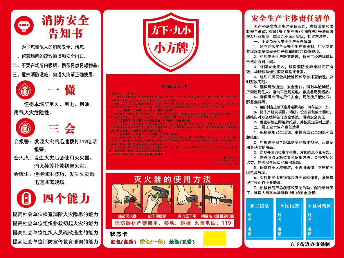 近年来,方下街道以打造“消防安全一条街”为目标,创新推出“小方牌”治理模式,以“小”切口推动“大”安全,通过“三个一”强基础、“三个抓”严监管、“三个层”聚合力,探索出一条可复制、可持续的“九小场所”消防安全治理新路径。