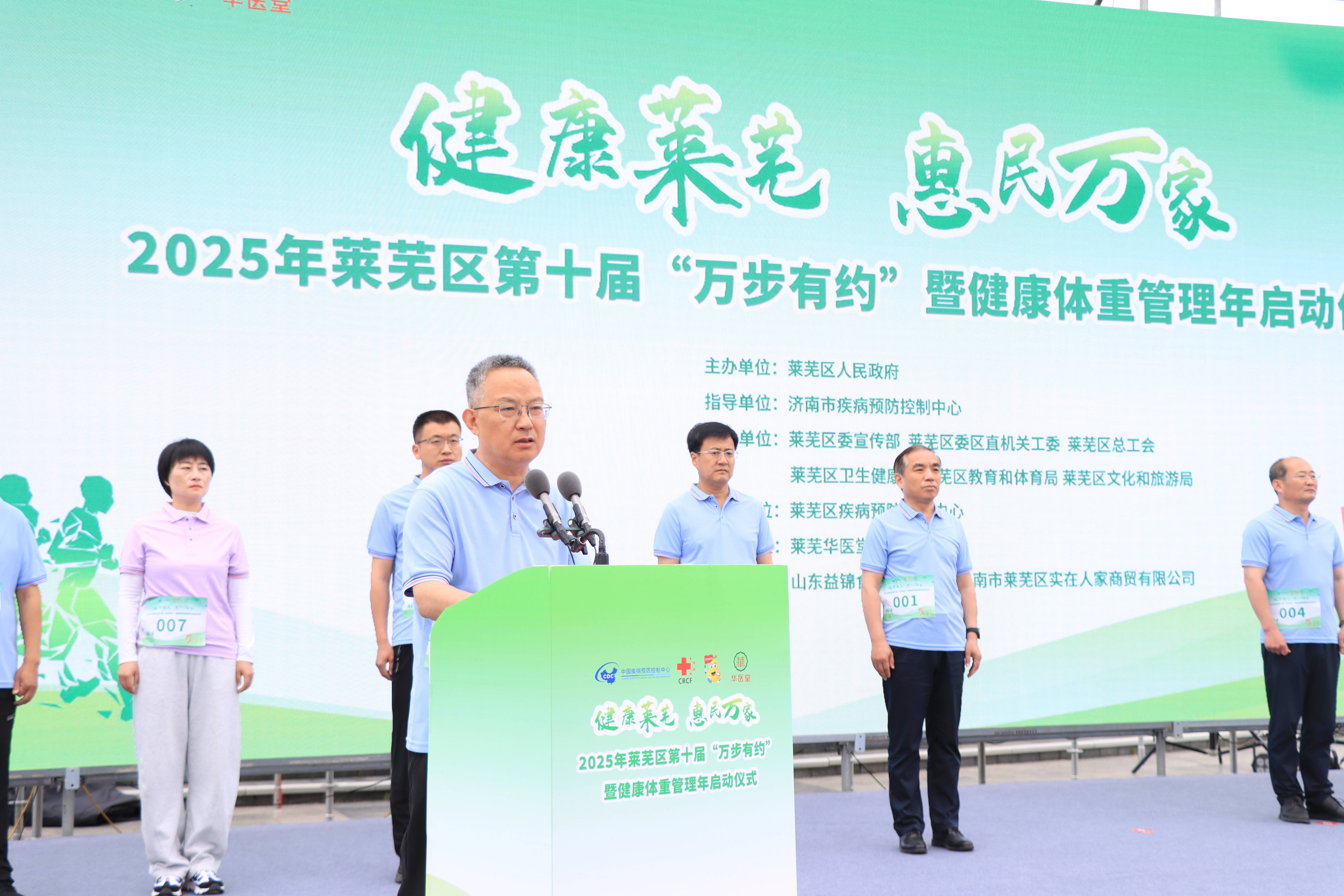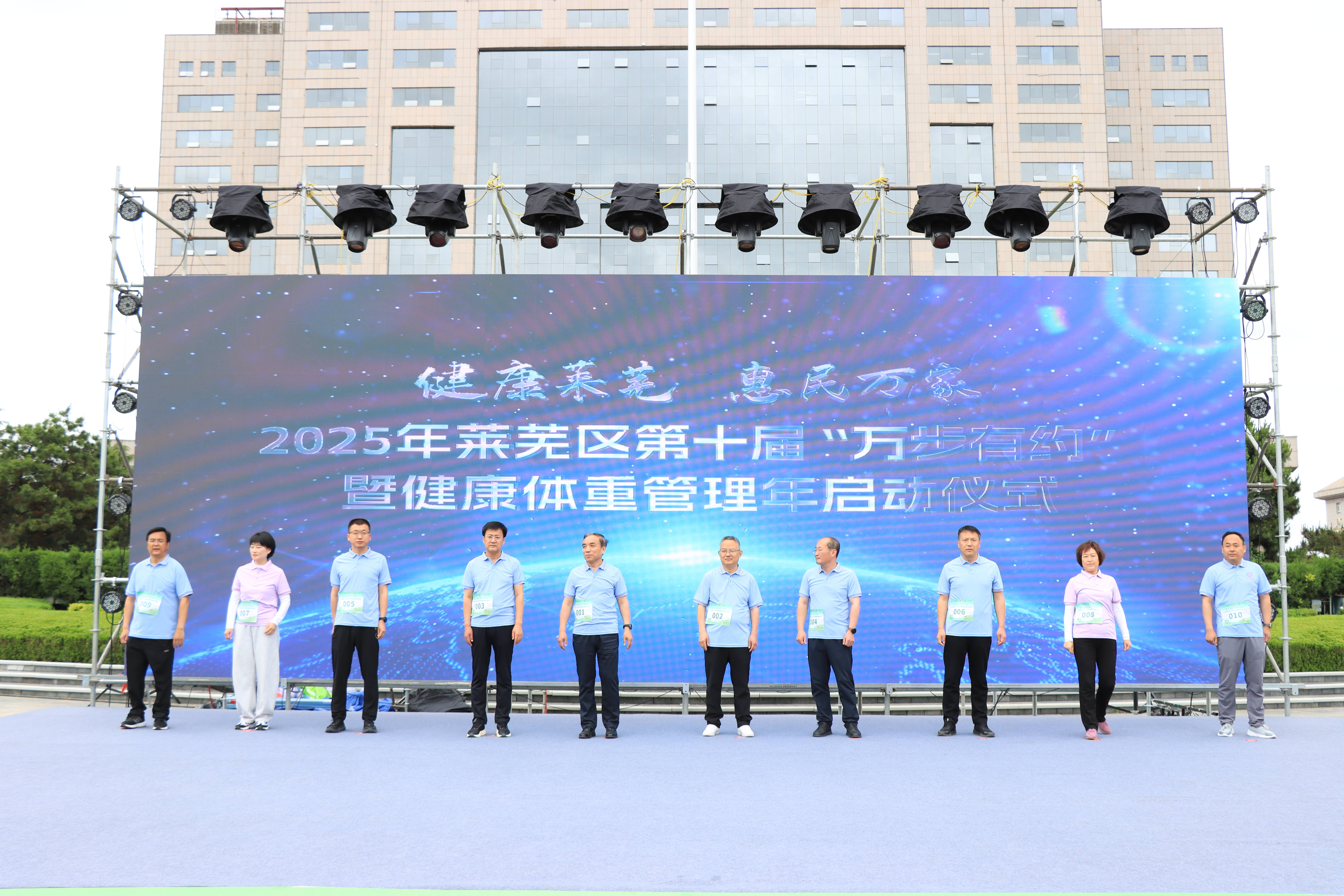 莱芜融媒5月9日讯 5月9日上午,“健康莱芜·惠民万家”2025莱芜区第十届“万步有约”暨健康体重管理年启动仪式在莱芜区政府广场举行。市疾病预防控制中心党委书记陈亮,区人大常委会副主任卞性善参加活动并共同按响起令喇叭。