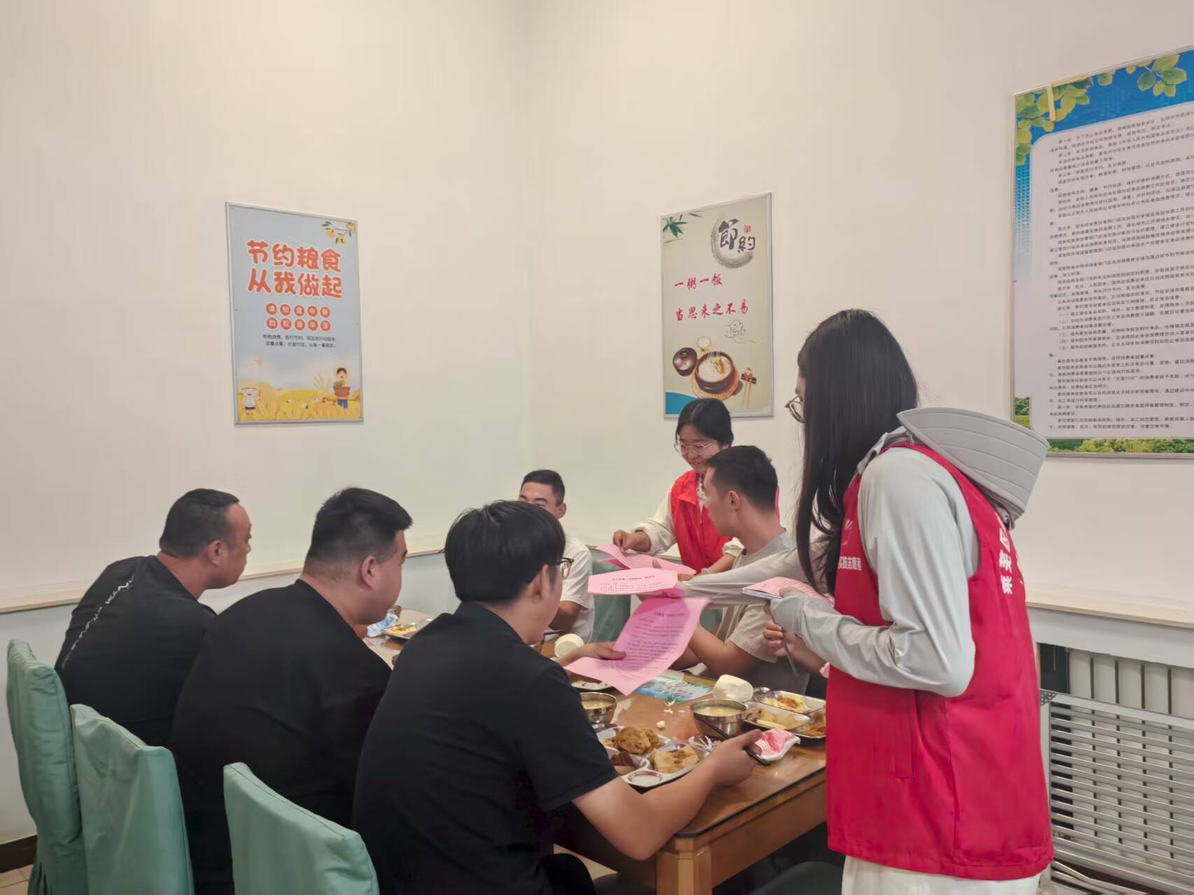 活动中,志愿者发放“文明餐桌”倡议书,宣传“勤俭节约、珍惜粮食”的文明就餐理念,他们在打饭窗口前,温馨提醒机关干部们根据自己的食量合理取餐,避免食物浪费。在餐桌上,大家交流互动,分享节约粮食的小窍门,比如何巧妙利用剩饭剩菜制作新的美食,既不浪费又能享受烹饪乐趣。大家对此次活动点赞并积极响应,纷纷表示,本次活动非常有意义,让大家认识到了节约粮食的重要性,今后都会时刻牢记 “光盘行动”,以实际行动践行文明用餐理念。