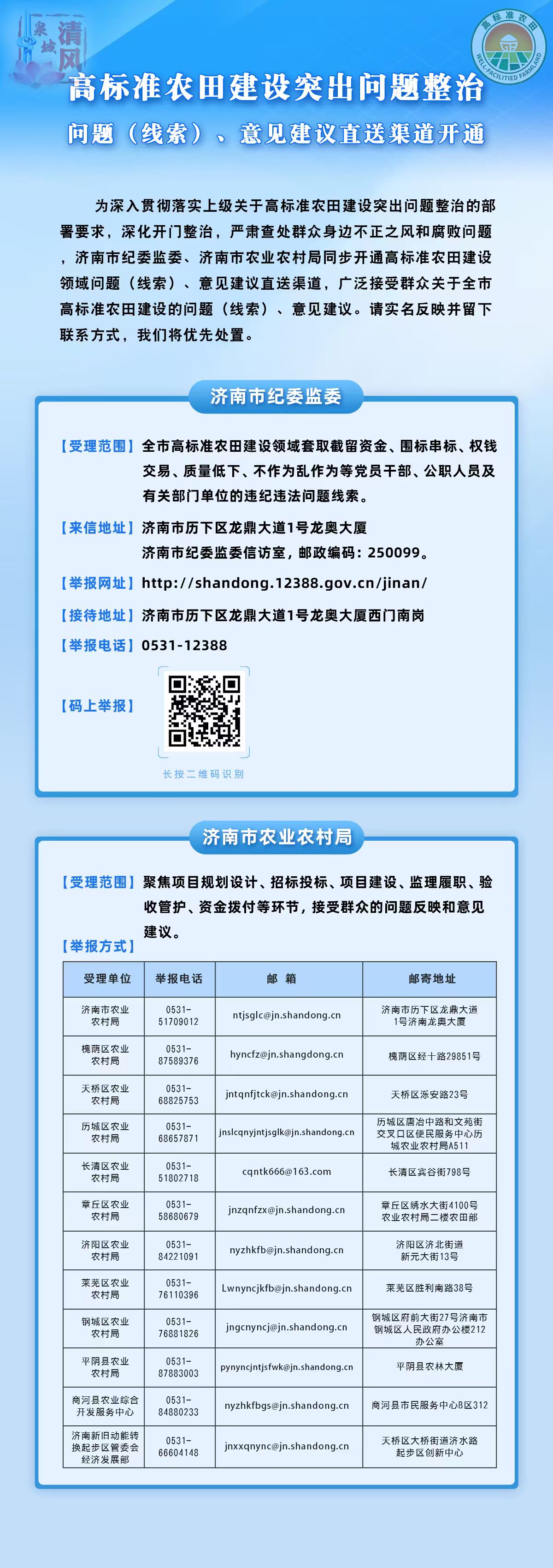 高标准农田建设突出问题整治问题(线索)、意见建议直送渠道开通