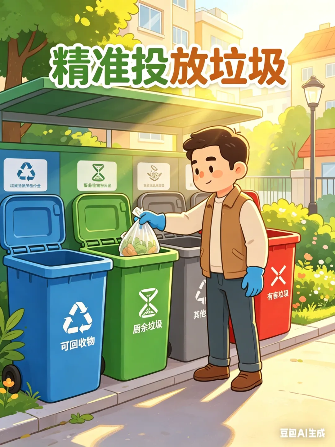 6.垃圾精准入桶,厨余垃圾扎紧袋口。不乱扔、不渗漏,减少他们的清理难度与工作量。