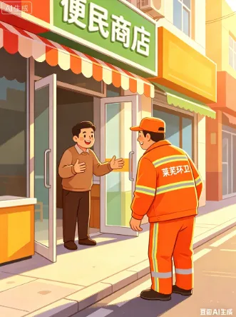4.沿街商户敞开善意之门。可为环卫工人提供免费热水、临时歇脚点,让奔波的他们有处休憩。