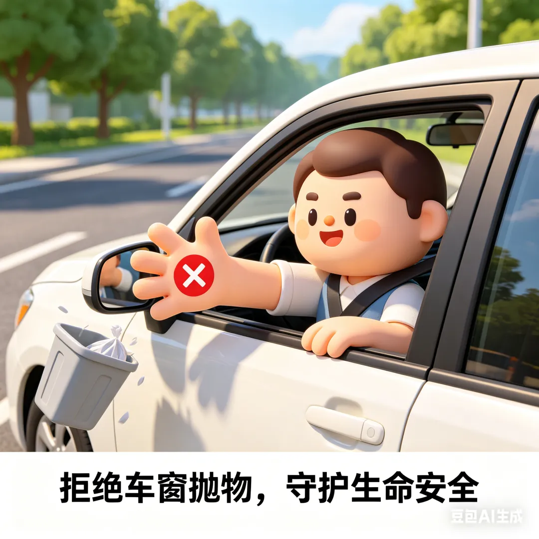 1.拒绝车窗抛物,守护生命安全。随手扔出的垃圾,可能让他们置身车流险境,文明出行,从管好车窗开始。