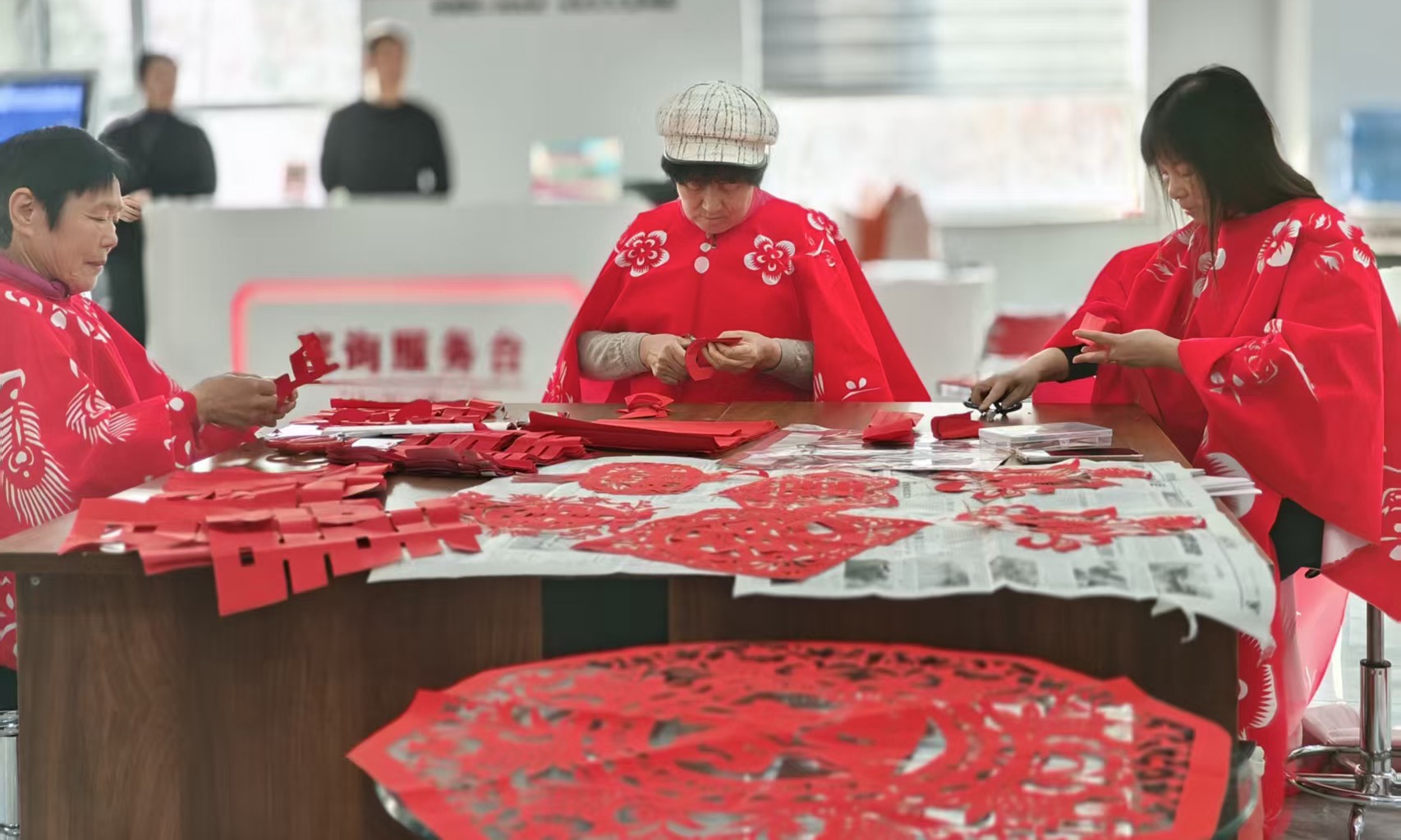 市级非物质文化遗产剪纸文化传承人王玉芳等三名老师现场创作并为新人赠送寓意美好的剪纸作品。这场传统剪纸艺术与现代婚姻登记的完美融合,不仅为新人送上了独特的节日祝福,更以文化之力赋能婚姻服务,引导新人树立责任担当、互敬互爱的文明婚恋观。