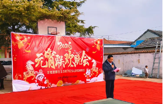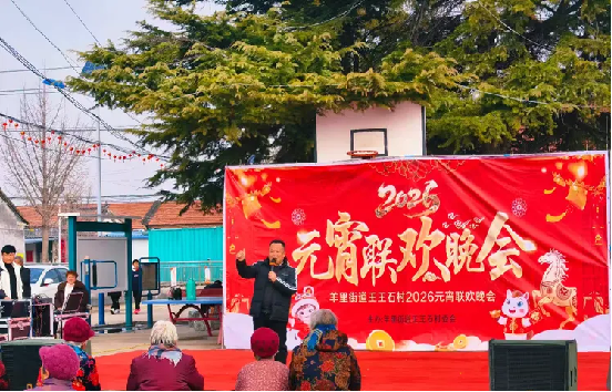 今天的王王石村,寒意未消,却早已被灯笼、横幅与人声焐热。在羊里街道王王石村举办这场扎根泥土的元宵联欢——没有霓虹舞台,只有水泥地铺就的红毯;没有专业剧场,却有最真挚的掌声与最滚烫的元宵。