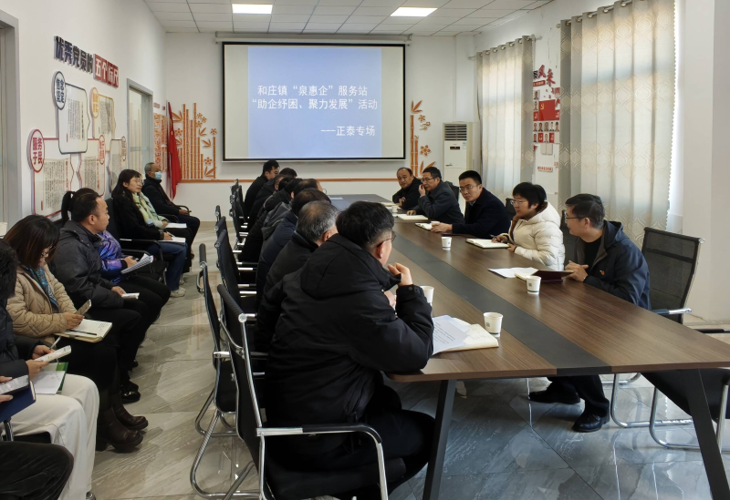 12月26日,莱芜区和庄镇“泉惠企”服务站“助企纾困、聚力发展”专场活动在山东正泰电缆有限公司举行。和庄镇服务企业党支部党员、正泰电缆公司党支部成员及企业负责人齐聚一堂,以“面对面”座谈的形式梳理帮扶成效、破解发展难题,将“把服务企业做实”的理念落到实处。