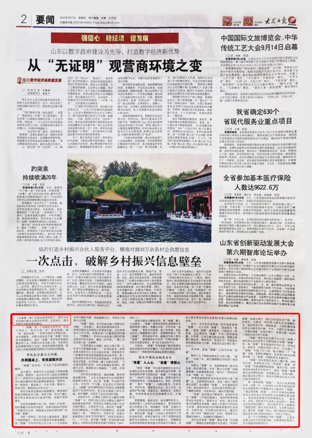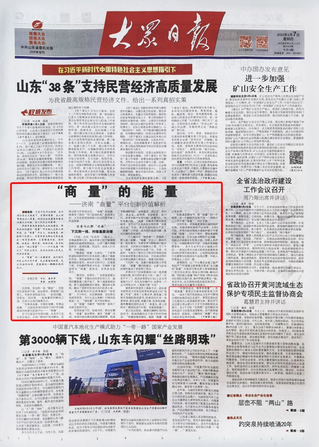 《 大众日报 》( 2023年9月7日 第1版)