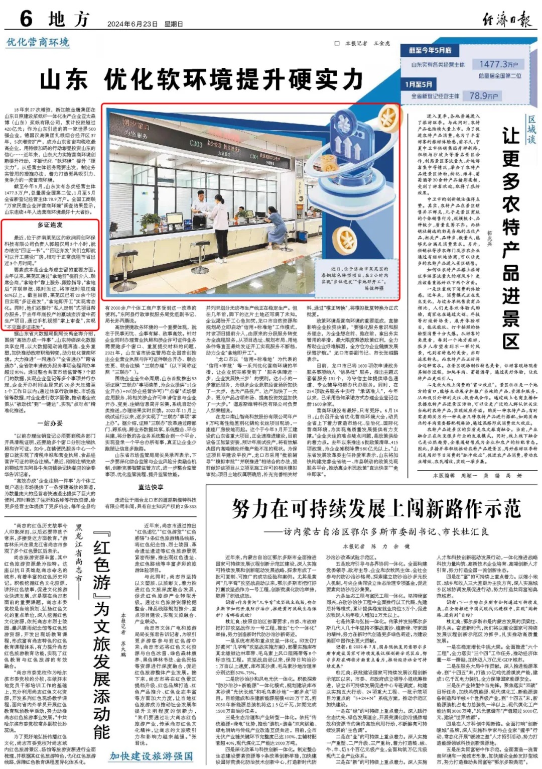 18年来27次增资,新加坡金鹰集团在山东日照建设浆纸纤一体化生产企业亚太森博(山东)浆纸有限公司,累计投资超过420亿元;作为山东引进的第一家世界500强企业,德国汉高集团扎根烟台经开区37年,5次增资扩产,成为山东省亩均税收最高企业,用持续加码的行动彰显投资山东的信心……近年来,山东大力实施营商环境创新提升行动,不断优化“软环境”提升“硬实力”,从经营主体切身需要出发,制定务实管用的措施办法,着力打造更具吸引力、竞争力的一流营商环境。