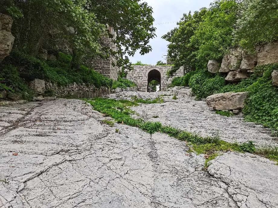 北关门保存较为完整。北门洞的洞顶上原来建有玄帝阁,阁已不存,柱石尚在。南洞口外东侧立有明朝万历年间(1573—1620年)所立《重修玄帝庙记》石碑。关北的坡道上有20多道石坝,宽处10余米,窄处仅2米多。沟底石坡道中间辙痕深达15厘米左右。