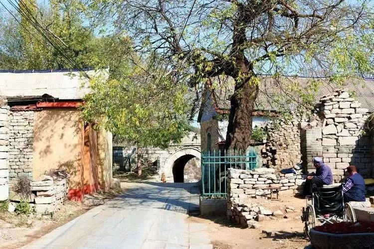 出青石关北门洞口向南,有一条石板路,石板路东西各生长着一棵国槐。靠近青石关洞口的那一棵,树干用四五个铁箍固定,稍远的另一棵树桩已经枯空。这两棵国槐虽饱经沧桑,但每年春天到来,它们依然枝繁叶茂。