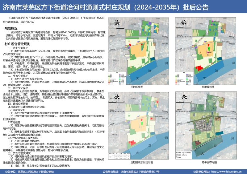 济南市莱芜区方下街道冶河村通则式村庄规划(2024-2035年)批后公告