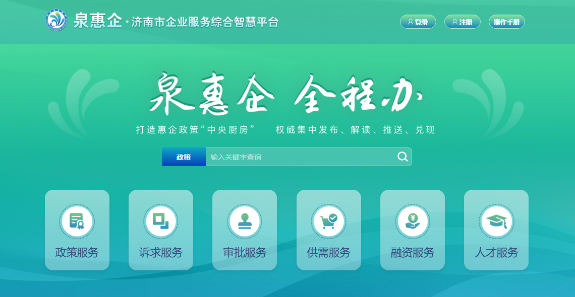 泉惠企·济南市企业服务综合智慧平台是市委、市政府向广大市场主体推送惠企政策的主阵地,向企业提供政策服务、诉求服务、审批服务、供需服务、融资服务、人才服务等服务内容。推动惠企政策集中发布、集中解读、集中推送、集中兑现,搭建起企业与政府互联互通的“直通车”。