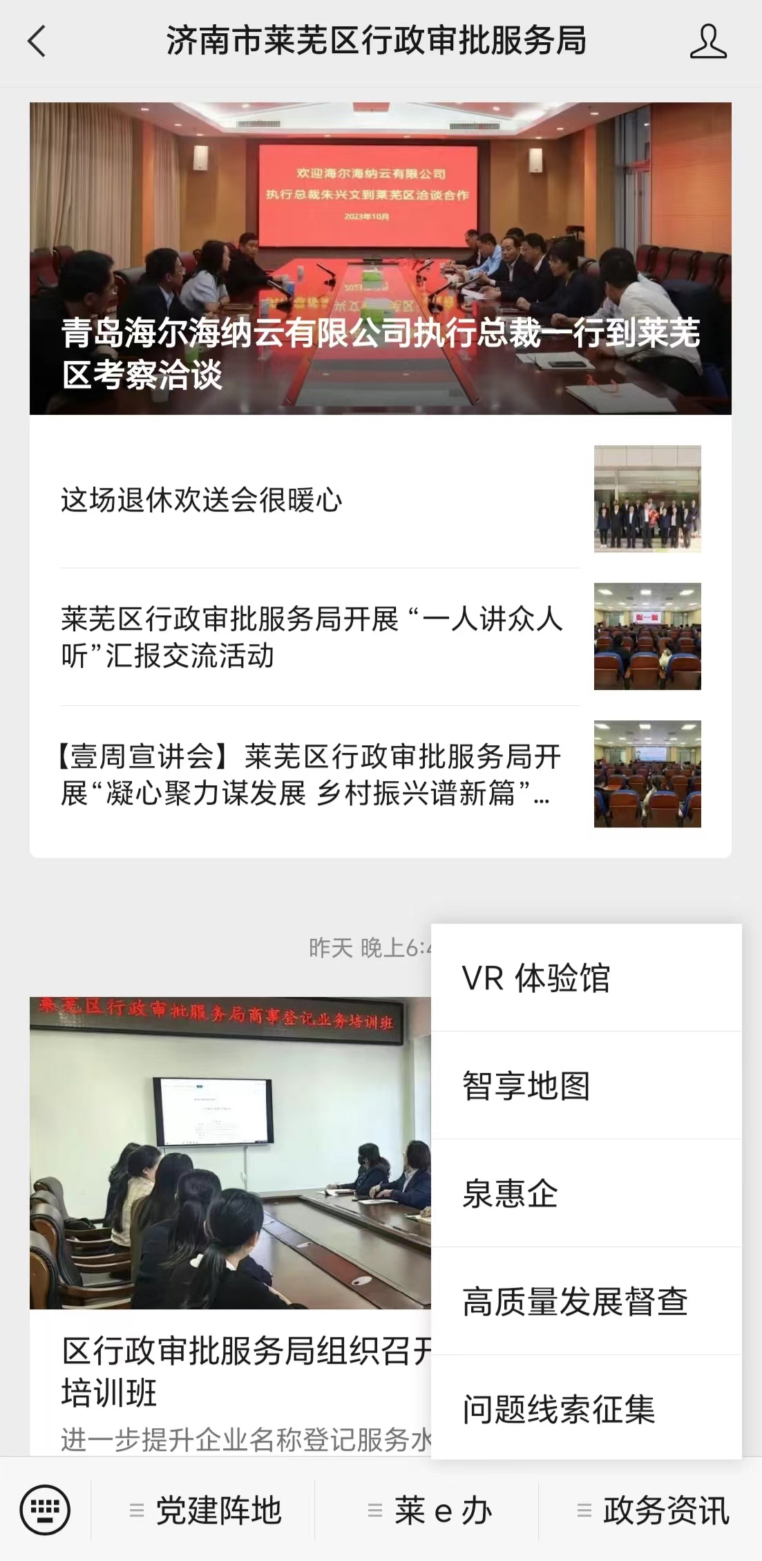 平台入口:济南市人民政府网站、济南市莱芜区人民政府网站“泉惠企”飘窗链接;济南市政务服务、济南市莱芜区行政审批服务局微信公众号;网页搜索“泉惠企”企业服务综合智慧平台”。