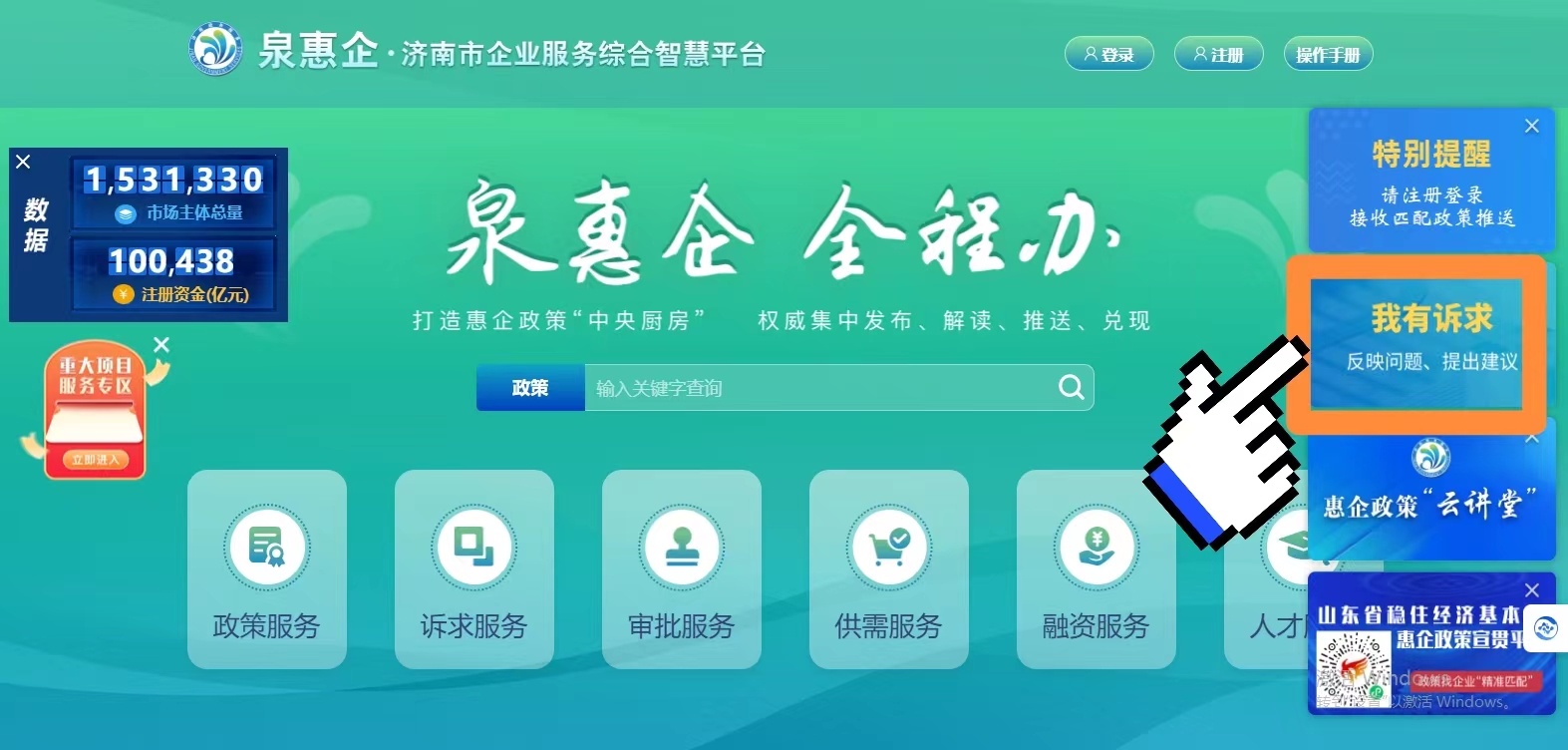 企业怎么通过“泉惠企”济南市企业服务综合智慧平台反映诉求?