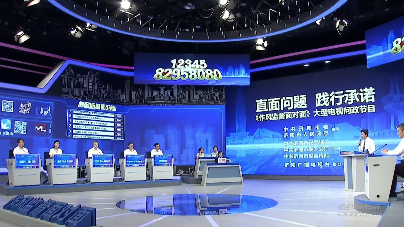 欢迎回来,现场以及屏幕前的各位观众朋友大家好,您正在收看的是大型电视问政节目“直面问题 践行承诺”——《作风监督面对面》,我是问政监督员宏刚。本期节目的上镜单位是:济南市人民医院、济南市中西医结合医院、济南市儿童医院、济南医院、济南市口腔医院五家单位。