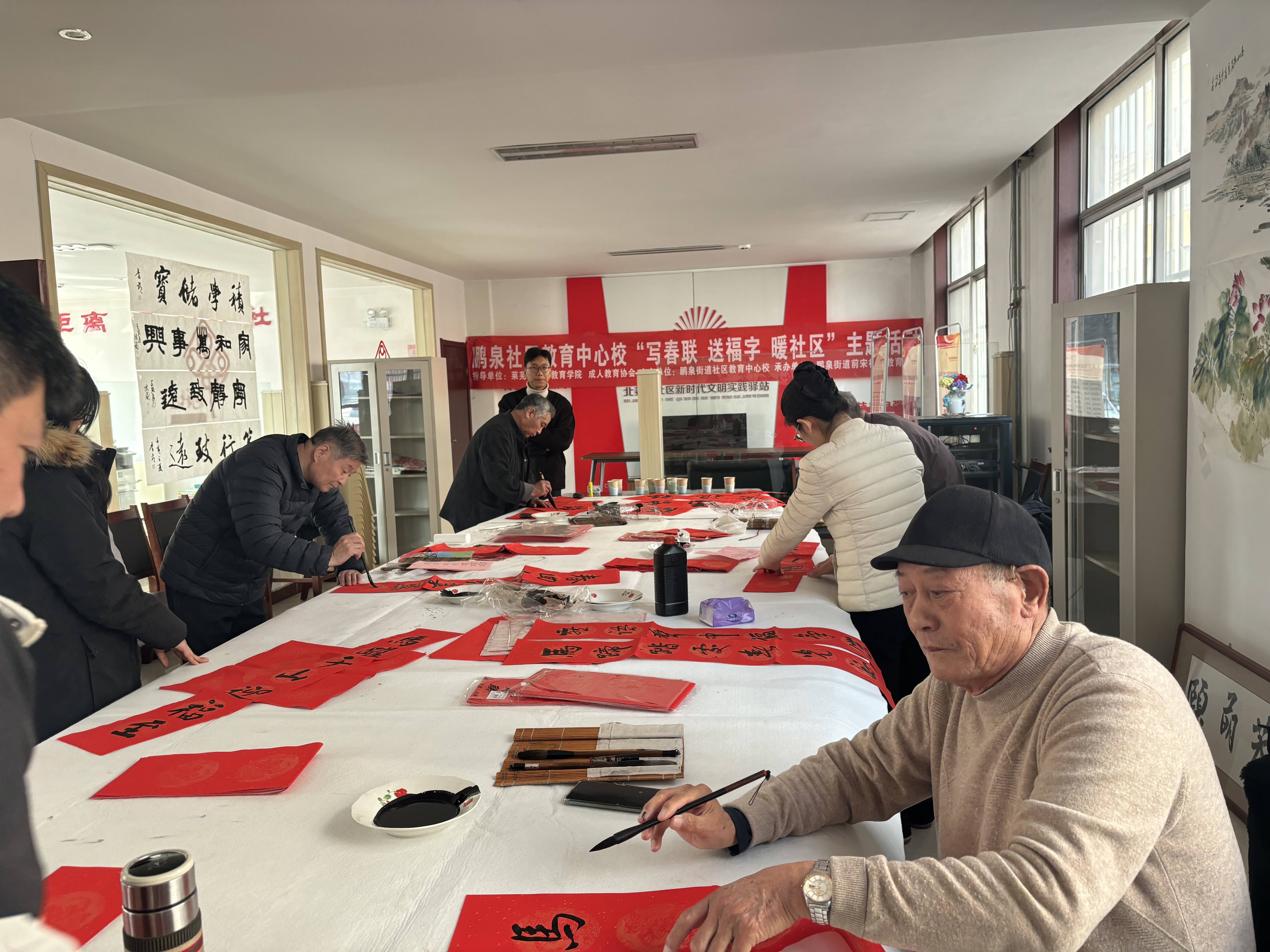 2月5日,鹏泉街道社区教育中心校联合鹏泉街道前宋社区教育学校在北姜庄社区开展“墨香传情暖万家春联送福迎马年”写春联送福字活动,以笔墨传递温暖,用祝福迎接新年。