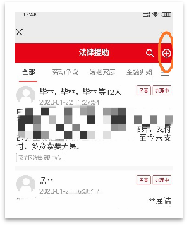 (2)点击右下角“智慧法援”,点击右上角+号,即可在线申请法律援助。点击左下角咨询,即可实现在线法律咨询。