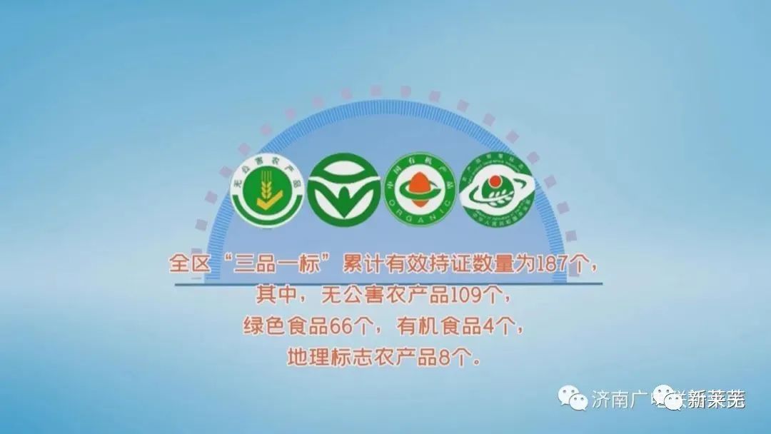 在莱芜,像这样的农业品牌并非个例,目前,全区“三品一标”累计有效持证数量为187个,其中,无公害农产品109个,绿色食品66个,有机食品4个,地理标志农产品8个。认证产品种类由原来的以生姜、大蒜为主,扩展到鸡腿葱、精细菜、白花丹参、食用菌、干鲜果、小杂粮等几十个品种,覆盖面越来越广,对加快莱芜农业标准化进程,推动现代农业、品牌农业发展发挥了重要作用。