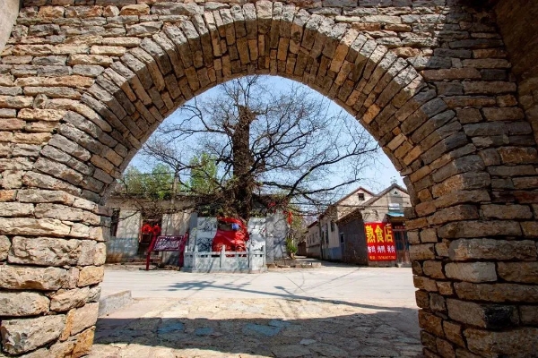千年古槐伫立在祥沟村十字街中心,相传黄巢曾在此棵树下拴过马,为了纪念黄巢,当地人称为“黄(皇)槐”、“将军树”。古槐粗壮高耸,树梢已超过五层楼高,主干要四人合围,虽树干中空、半边枯焦,但仍生机盎然。