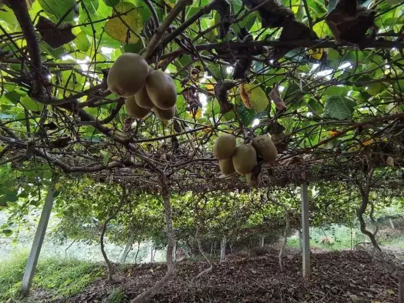 猕猴桃则悠哉悠哉的坠在架子下,你挤我,我挤你,毛茸茸圆溜溜的很是可爱。