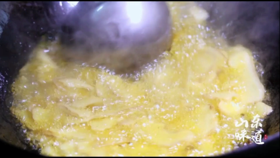 重油,重料,重口味,以滋补著称的莱芜生姜被切成大片,宽油炸出姜汁,下入鸡肉和各类调料混合炖煮。