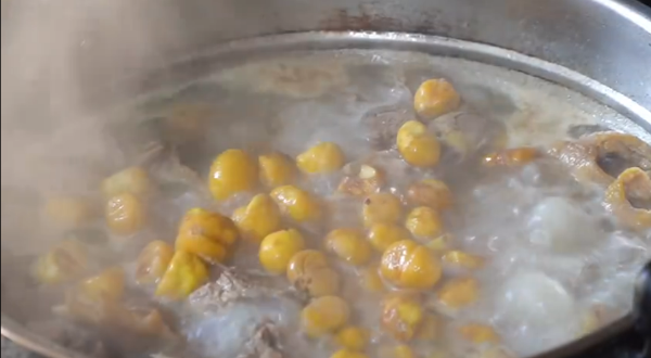 刚出锅的板栗炖鸡汤汁爽口,鸡肉鲜美紧实,板栗香甜软糯。吃上一口,是满满的山野味道。